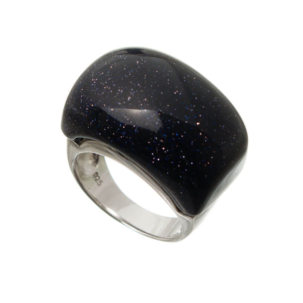 Anel Prata Pedra Estrela possui pedra estrela com lapidação cabochão, na cor azul escuro com muitos pontos de luz que lembram uma noite com céu estrelado.
