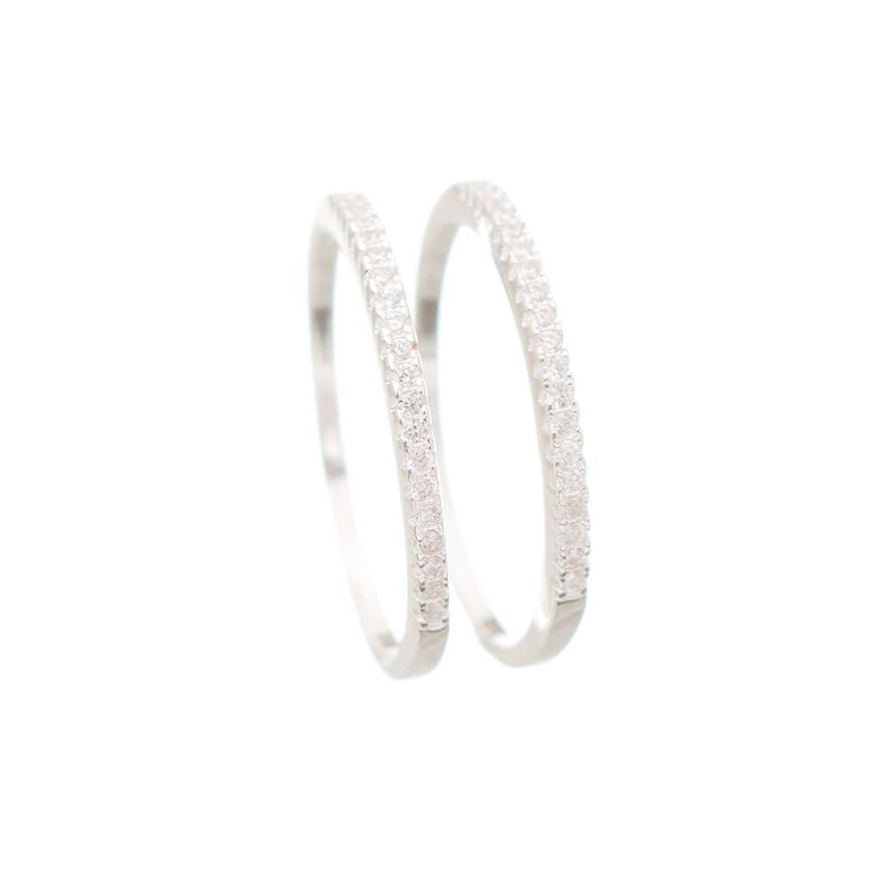 Aparador Aliança Prata Fino possui cravação de micro zircônias brancas em seu topo.