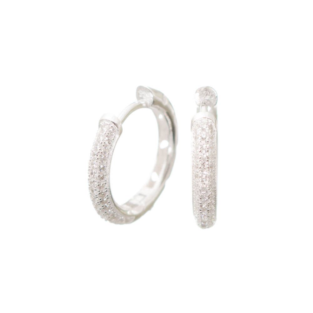 O Brinco Prata Argola Vazado possui cravação de pedras na parte frontal e detalhes com cortes vazados no lado oposto. Confeccionado em prata 925, o Brinco Prata Argola Vazado possui micro zircônias brancas e tem forma abaulada.