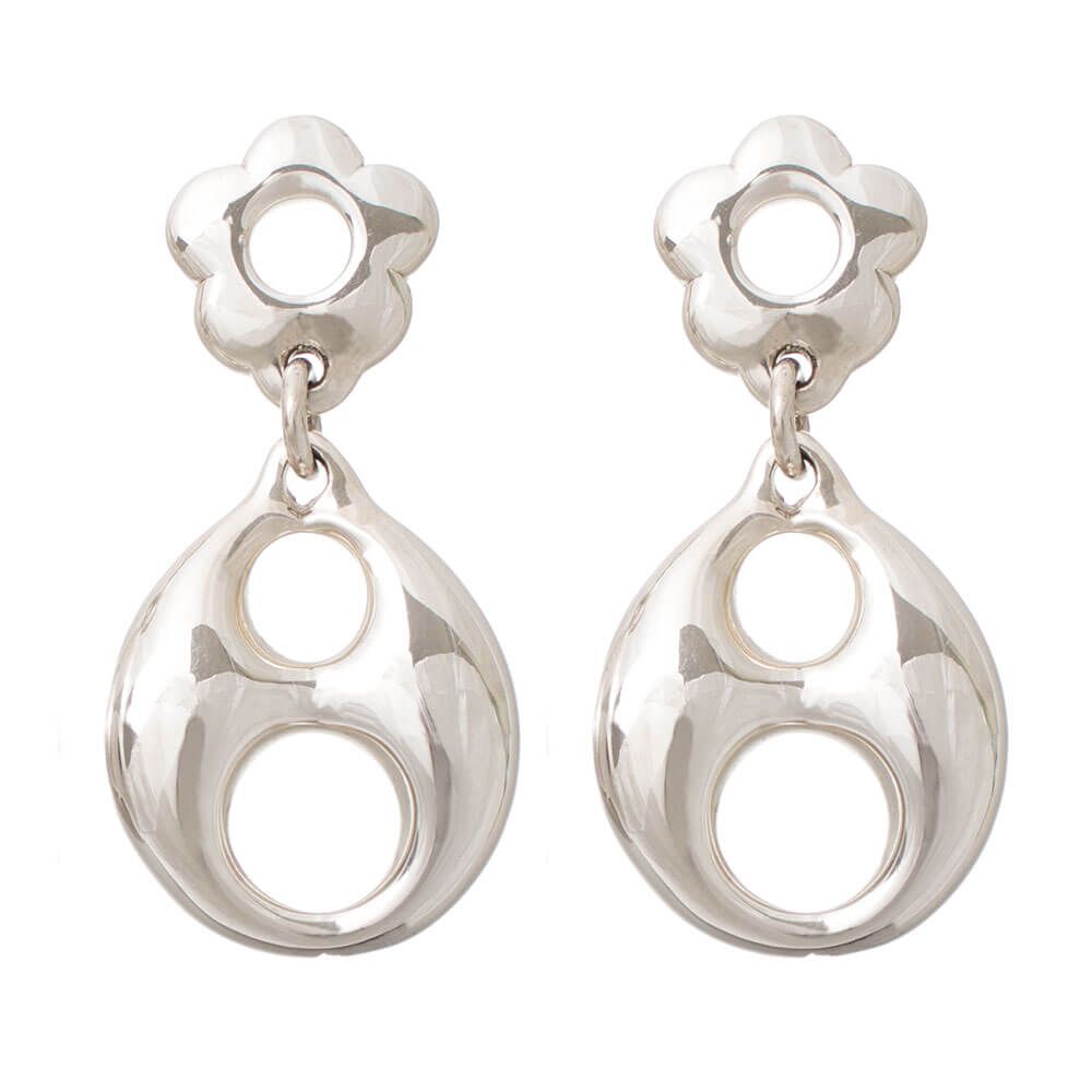 Confeccionado em prata 925, o Brinco Prata Grande Espelhado possui detalhes vazados.