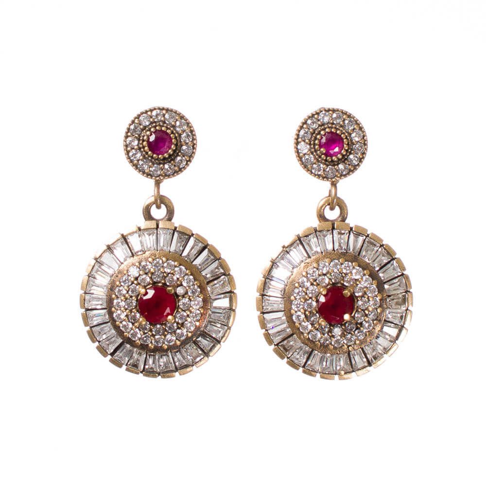 Confeccionado em prata 925, o Brinco Prata Pizza Joia Turca possui detalhes banhados em bronze, pedra natural vermelha, zircônias brancas redondas e filetadas.