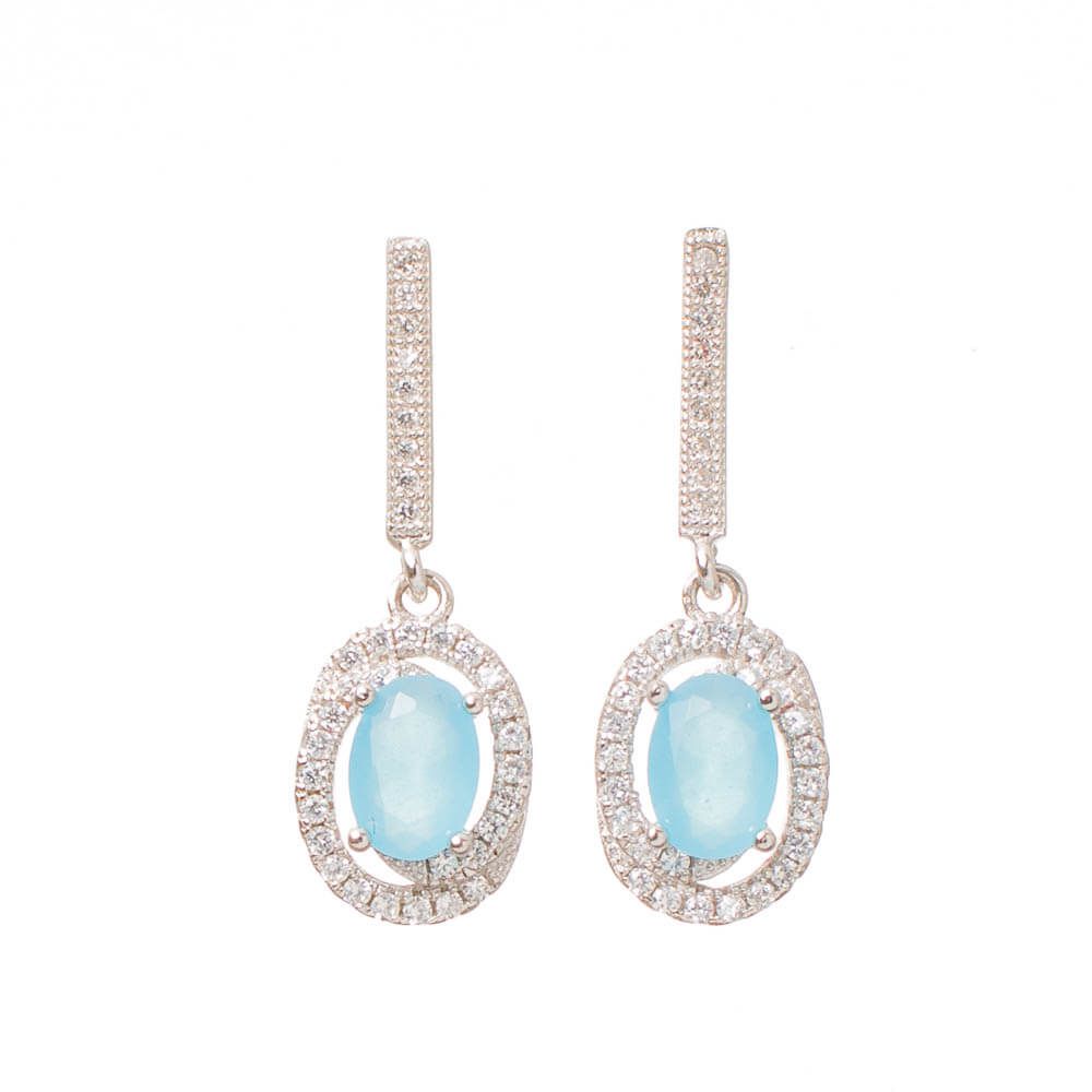 Confeccionado em prata 925, o Brinco Prata Quartzo Azul possui banho de ródio, quartzo azul com lapidação oval e micro zircônias brancas.