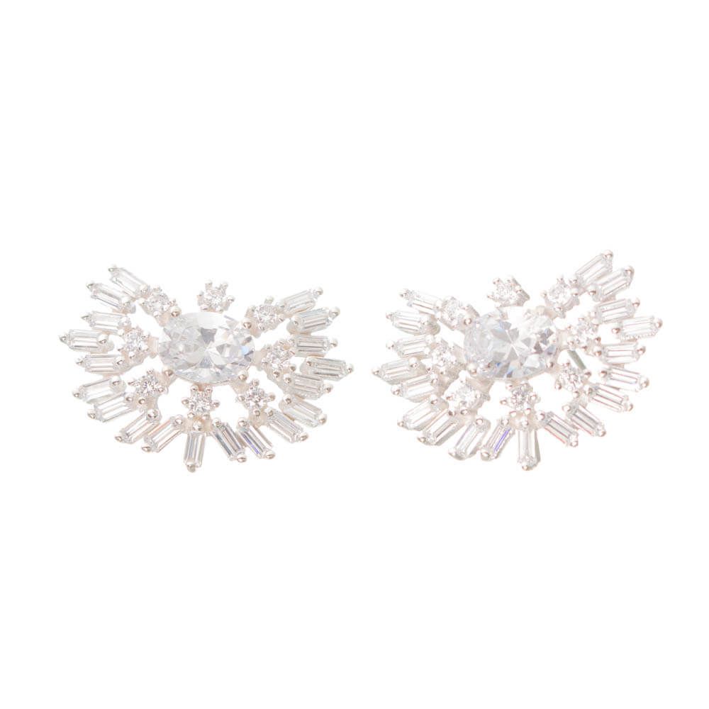 Confeccionado em prata 925, o Brinco Prata Zircônias Festa possui zircônias brancas baguettes e oval.